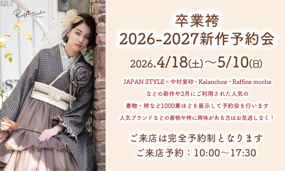 当店には700着の振袖と1500着を超える卒業式着物や袴がございます。また、女性はもちろん男性の羽織袴も豊富にございます。お得なプランやキャンペーンも実施中です。様々なブランドの振袖や袴をオーダーレンタルにも対応していますので、お客さまのあらゆるニーズにお応えできます。
