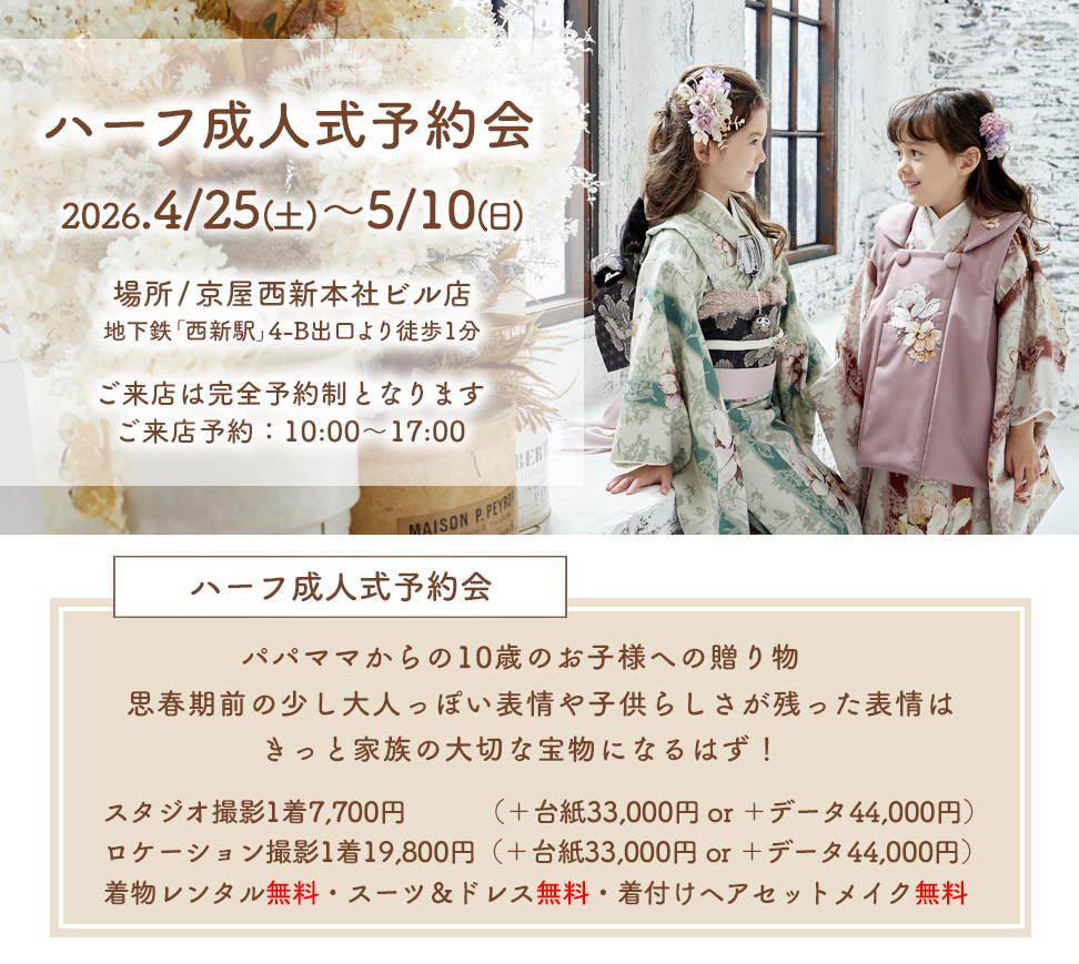 西新本社ビル店内にはヘアセット・メイク・着付けを行う支度室や撮影スタジオを併設しており、成人式や卒業式の着物レンタルから撮影までワンストップでおまかせいただけます。福岡で成人式・卒業式の振袖レンタル・袴レンタルのご用命は、ぜひ京屋へお気軽にご相談ください。